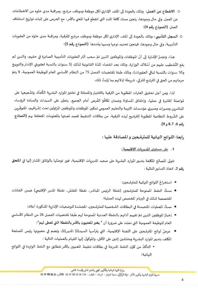مذكرة رقم 03 19 صادرة عن وزارة التربية الوطنية بتاريخ 15 يناير 2019 في شأن الترقية بالإختيار 2018