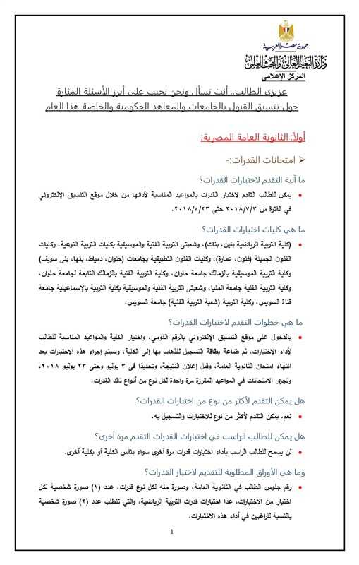 نتيجة تنسيق المرحلة الاولى للثانوية العامة 2018 معرفة الحد الادنى لجميع الكليات علمى وأدبى Youtube