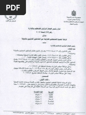 قرار رئيس الجهاز المركزى للتنظيم و الإداره رقم 212 لسنه 2013 بترقيه جميع العاملين مستحقى الترقيه